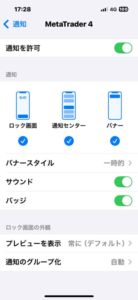 MT4アプリ内で「通知を有効にする」オプションがオンになっていることを確認します。