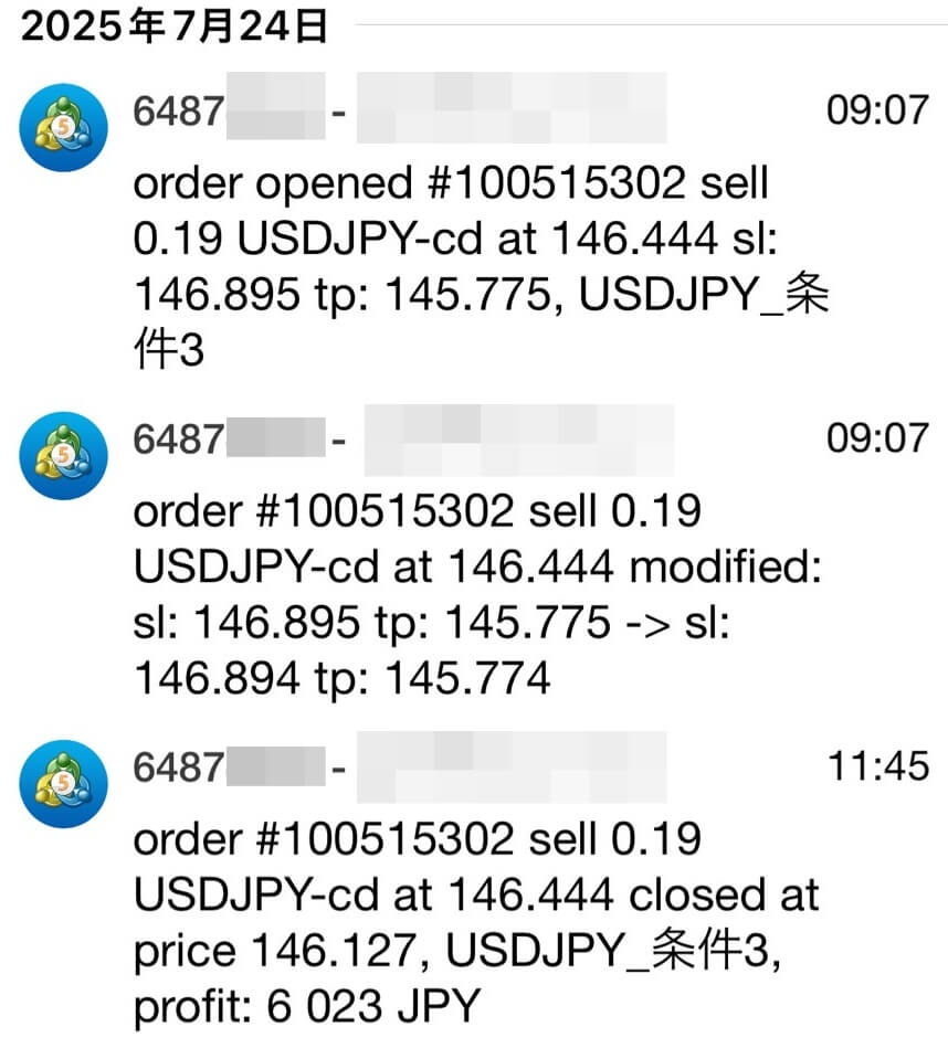 Expart Advisorから、通常、約定後1分以内に下記のようなメールが届きます。