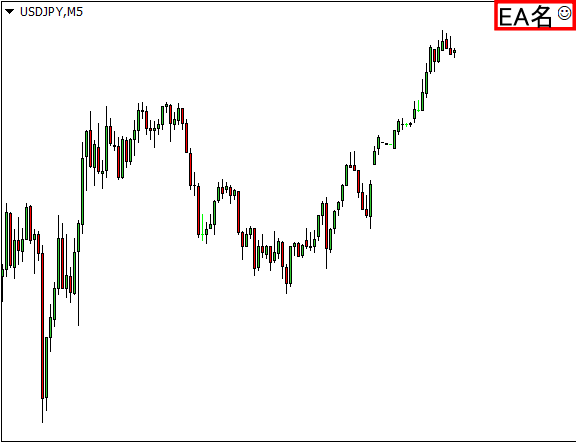 ここまでで、ドル円チャートにEAを入れ終わりました。